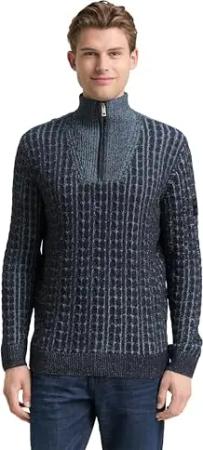 Herren 1038315 Strukturierter Strick-Pullover mit Troyer-Kragen, 18964-vintage Indigo Blue Melange, XXL