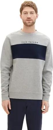 Herren Colourblock Sweatshirt mit Logo-Print, 12035 - Grey Heather Melange, XL
