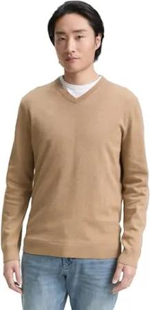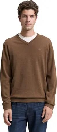 Herren Basic Pullover mit V-Ausschnitt aus Baumwolle, 36292 - Mustard Melange, S