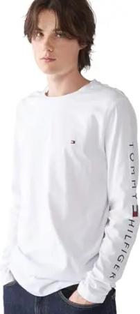 Herren Langarmshirt Tommy Logo Baumwolle, Weiß (White), M