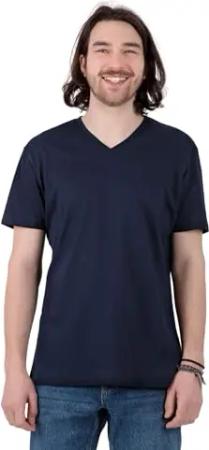 Herren V-Shirt aus 100% Bio Baumwolle (Gr. S-XXL) Einfarbiges T-Shirt mit V-Ausschnitt und kurzen Ärmeln in gerader Passform, French Navy, L
