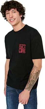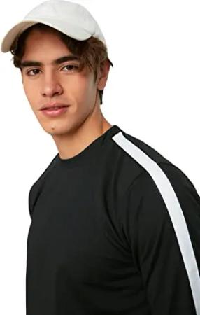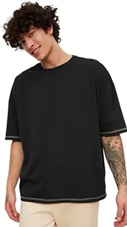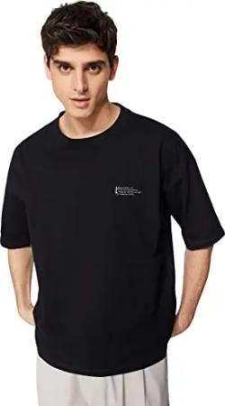 Herren Trendyol Basic Herren Slim Fit 100% Baumwolle Kurzarm Fahrrad T-Shirt, Black, S