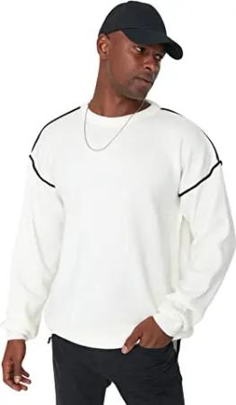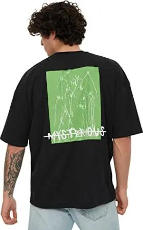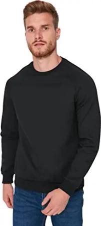 Herren Trendyol Men's Oversize Cycling Collar Long Sleeve Printed Sweatshirt, Schwarz, S EU