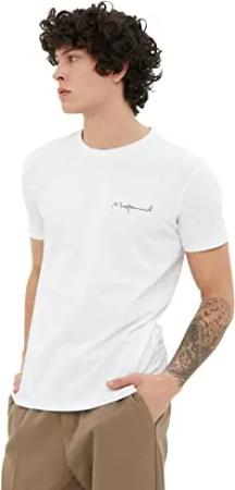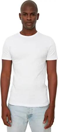Herren Trendyol Basic Herren Slim Fit 100% Baumwolle Kurzarm Fahrrad T-Shirt, White, L