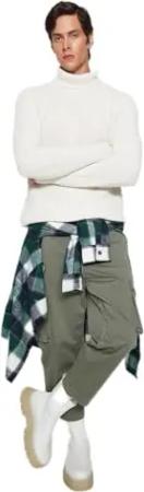 Herren Man Regular fit Basic High Neck Knitwear Sweater Pullover, Ecru, M