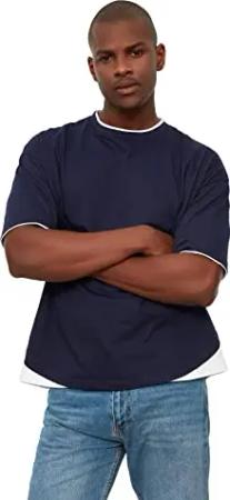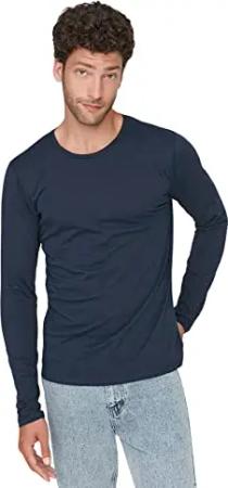 Herren Trendyol Basic Herren Slim Fit 100% Baumwolle Kurzarm Fahrrad T-Shirt, Blue, XL