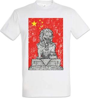 Chinese Lion Statue and Flag Herren T-Shirt Weiß Größe M