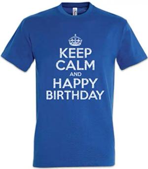 Keep Calm and Happy Birthday Herren T-Shirt Blau Größe M