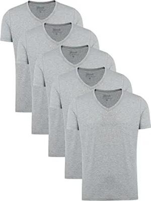 Mythic - Slim Fit Herren Shirt Mit V-Ausschnitt - 5er Pack Männer Basic Tshirts - Klassische Baumwoll Tshirts, Grau (Dapple Gray 163907), 5XL