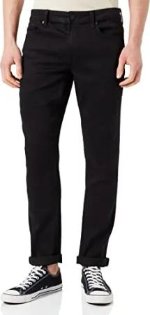 Herren Regular Fit Jeans Straight Denim Stretch Pants Stoned Washed Hose Trousers, Farben:Schwarz, Größe Jeans:28W / 30L