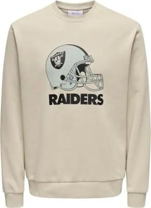 Herren Sweatshirt Rundhals Langarm Sweater Pullover Eagles/Raiders NFL, Farben:Beige-2, Größe Pullover:L