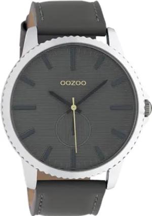 Herrenuhr mit Lederband und gerändelter Lünette 46 MM Grau/Grau C10330