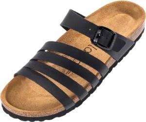 Damen Pantoletten Roma - bequeme Sandaletten mit Kork-Fussbett - modische Hausschuhe mit verstellbarem Riemen - Sandalen für Frauen mit Leder-Laufsohle Basic Matt Schwarz UK8 - EU41