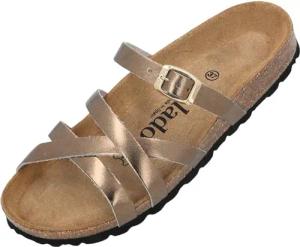 Pantoletten Damen Cruisi Premium Leather - bequeme Sandalen Made in Spain - Hausschuhe mit Kork-Fußbett - elegante Sommerschuhe Gold Metallic UK4,5 - EU37