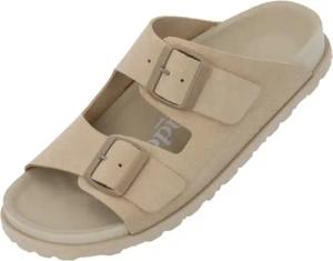 Pantoletten Damen Elaha Mono - elegante Sandalen Made in Spain - bequeme Hausschuhe mit Kork-Fußbett - modische Sommerschuhe Beige UK3,5 - EU36