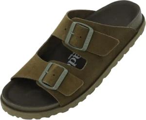 Pantoletten Damen Nubra - bequeme Sandalen Made in Spain - Hausschuhe mit dämpfendem Kork-Fußbett - modische Sommerschuhe Khaki UK9 - EU42