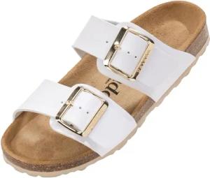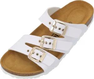 Pantoletten Damen Jalexi - bequeme Sandalen Made in Spain - Hausschuhe mit dämpfendem Kork-Fußbett - modische Sommerschuhe Weiß UK3,5 - EU36