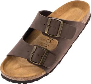 Pantoletten Herren Tavros - bequeme Sandalen Made in Spain - Hausschuhe mit Kork-Fußbett - modische Sommerschuhe Braun UK10 - EU44