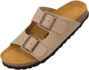 Pantoletten Herren Tavros - bequeme Sandalen Made in Spain - Hausschuhe mit Kork-Fußbett - modische Sommerschuhe Beige UK10 - EU44