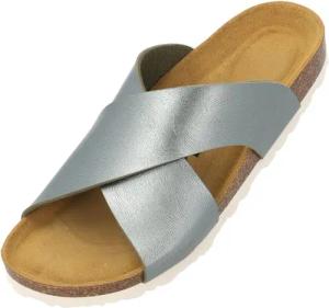 Pantoletten Damen Cruisi Premium Leather - bequeme Sandalen Made in Spain - Hausschuhe mit Kork-Fußbett - elegante Sommerschuhe Bronze Metallic UK8 - EU41