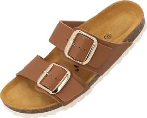 Pantoletten Damen Elaha Mega - bequeme Sandalen Made in Spain - Hausschuhe mit Kork-Fußbett - modische Sommerschuhe Braun UK7 - EU40