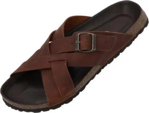 Sandalen Herren Napoli – bequeme Pantoletten mit dämpfendem Kork-Fußbett - Hausschuhe mit Fersenriemen - Sommerschuhe Braun UK10,5 - EU45