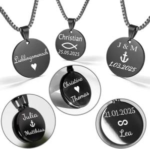 UNIQAL - Gravur-Halskette aus Edelstahl – Persönlicher Anhänger mit Name, Datum oder Koordinaten – Geschenkidee für Frauen & Männer – Individuelle und bedeutungsvolle Namenskette (Black Coin)