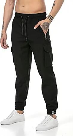 Jogging-Hose für Herren Jogger Sweat-Pants Freizeithose Cargo Schwarz XL