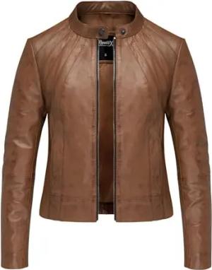 Damen Echtleder Jacke Biker Zipper Lederjacke RJ-8004 Cognac XS