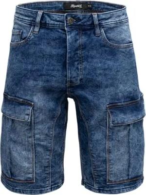 Herren Cargoshorts Männer Kurze Bermuda Jeans Hose Regular Fit R7036 Dunkelblau W32