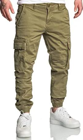 Herren Jogger Cargo Chino Jeans Hose R7020 Olive W29