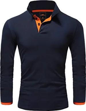 Herren Poloshirt Basic Kontrast Langarm Polohemd Shirt R0521 Navyblau/Orange XXL