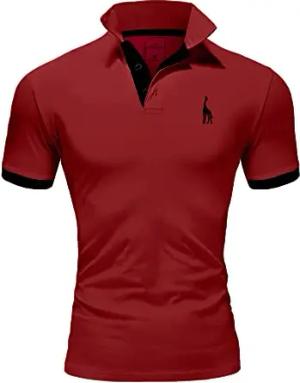 Herren Poloshirt Basic Kontrast Stickerei Kragen Kurzarm Polohemd T-Shirt R-0058 Bordeaux/Schwarz XL