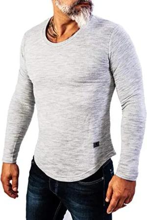 Herren Longsleeve Shirt Langarm Hoodie Sweatshirt Kapuzenpullover Langarmshirt Herrenpulli Street Style H-144 Hellgrau S