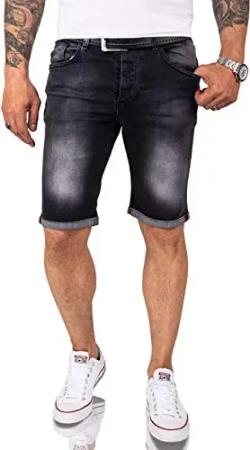 Herren Shorts Jeansshorts Denim Short Kurze Hose Herrenshorts Jeans Sommer Hose Stretch Bermuda Hose RC-2214 Dunkelgrau W40