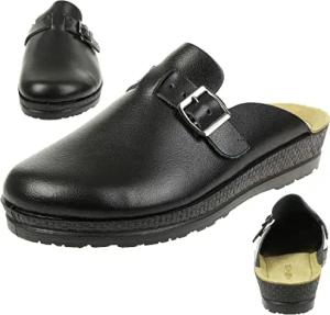 Herren Pantoffel Clog Nubuk Leder Schnalle Alassio 6794, Größe:44 EU, Farbe:Schwarz