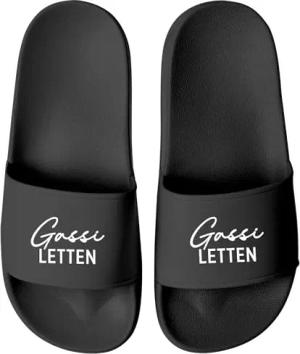 Badeschlappen Gassi-Letten Badelatschen Unisex mit Aufdruck Geschenk Hundebesitzer Herren Damen Badeschuhe Hausschuhe Männer Frauen Schwarz-schwarz 36