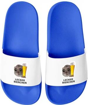 Badeschlappen Herren Damen Unisex mit Spruch Lecker Bierchen Schlappen Hamster Meme Badelatschen Party Urlaub Blau-weiss 47