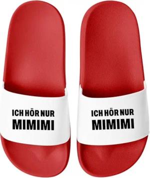 Badeschlappen mit Spruch Lustig Mimimi Unisex Slides Herren Damen Badeschuhe Männer Frauen Büro Gadget Rot-weiss 43