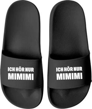 Badeschlappen mit Spruch Lustig Mimimi Unisex Slides Herren Damen Badeschuhe Männer Frauen Büro Gadget Schwarz-schwarz 44