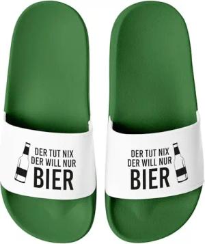 Badeschlappen Spruch Lustig Der tut nix der will nur Bier Badelatschen Aufdruck Herren Umisex Badeschuhe Schwarz-weiss 37