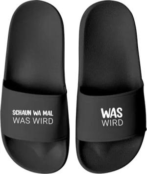 Badeschlappen Unisex Lustig Meme-Badelatschen mit Spruch Schaun wa mal was wird für Männer & Frauen Fun Geschenk Schwarz-schwarz 38