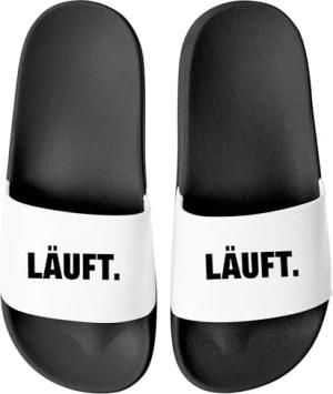 Badeschlappen Unisex mit Aufdruck Läuft Herren Damen Badeschuhe Männer Frauen Urlaub Accessoires Schwarz-weiss 43