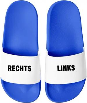 Lustige Badeschlappen mit Beschriftung | Witzige Schlappen für Männer & Frauen | Fun-Geschenk für Vergessliche Morgenmuffel Festival-Fans Blau/weiss 40