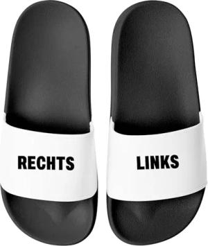 Lustige Badeschlappen mit Beschriftung | Witzige Schlappen für Männer & Frauen | Fun-Geschenk für Vergessliche Morgenmuffel Festival-Fans Schwarz-weiss 40