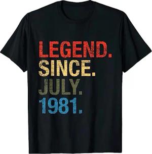 41st Birthday Mens Year Old - Legend Since July 1981 T-Shirt