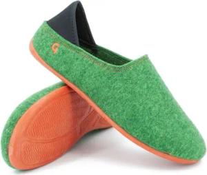 Filzhausschuh Wool Slip-On aus 100% Schurwolle - für Damen & Herren - Rutschfeste Gummisohle Green/orange, 37