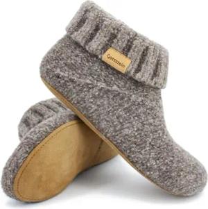 Filzhausschuh Wool Slip-On aus 100% Schurwolle - für Damen & Herren - Rutschfeste Gummisohle Grey/green, 36