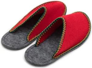Gästepantoffel mit Bordüre I Rot I Größe 40/43 I Bequeme Filzpantoffeln I Atmungsaktive Hausschuhe mit Filzsohle I Warme Filzhausschuhe für Damen & Herren