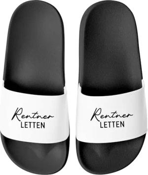 Badelatschen Rentnerletten für Männer zum Ruhestand Rente Geburtstag – Witzige Hausschuhe Fun Geschenk für Rentner & Senioren Schwarz-weiss 40